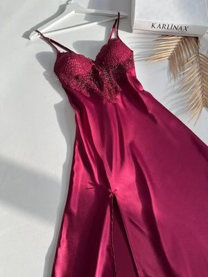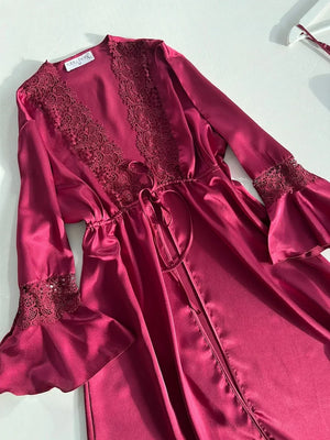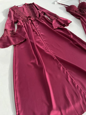 Satin Silk Nighty Set of 4 with Claret Red Guipure Detail