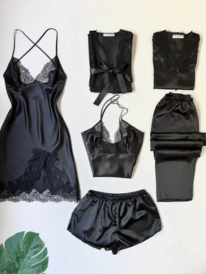 This 6 pcs night dress set is made of 100% silk. Its luxuriously soft and lightweight fabric offers a comfortable fit and a stylish look. Its moisture-wicking and breathable properties make it the perfect attire for a good night's sleep.