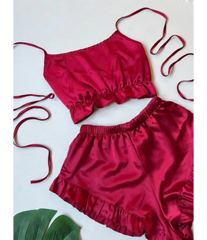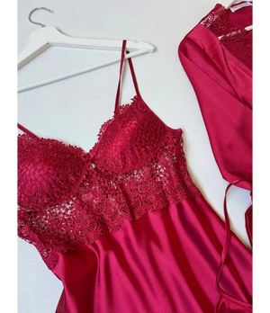 Satin nightgown with adjustable straps,bralette set, rope, backlessSatin Fabric,