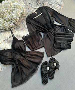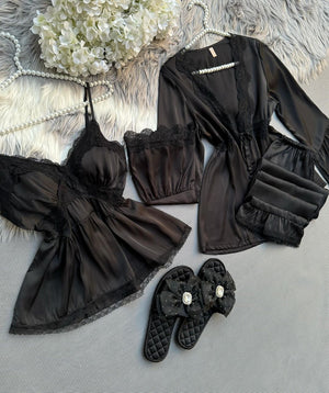 This 5 pcs night dress set is made of 100% silk. Its luxuriously soft and lightweight fabric offers a comfortable fit and a stylish look. Its moisture-wicking and breathable properties make it the perfect attire for a good night's sleep