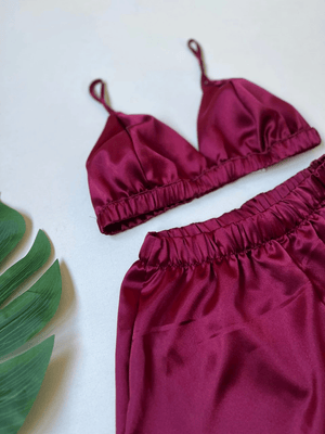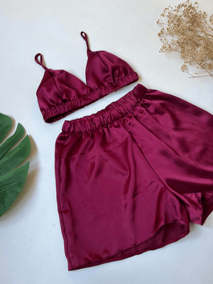 Burgundy Bralet Shorts Set